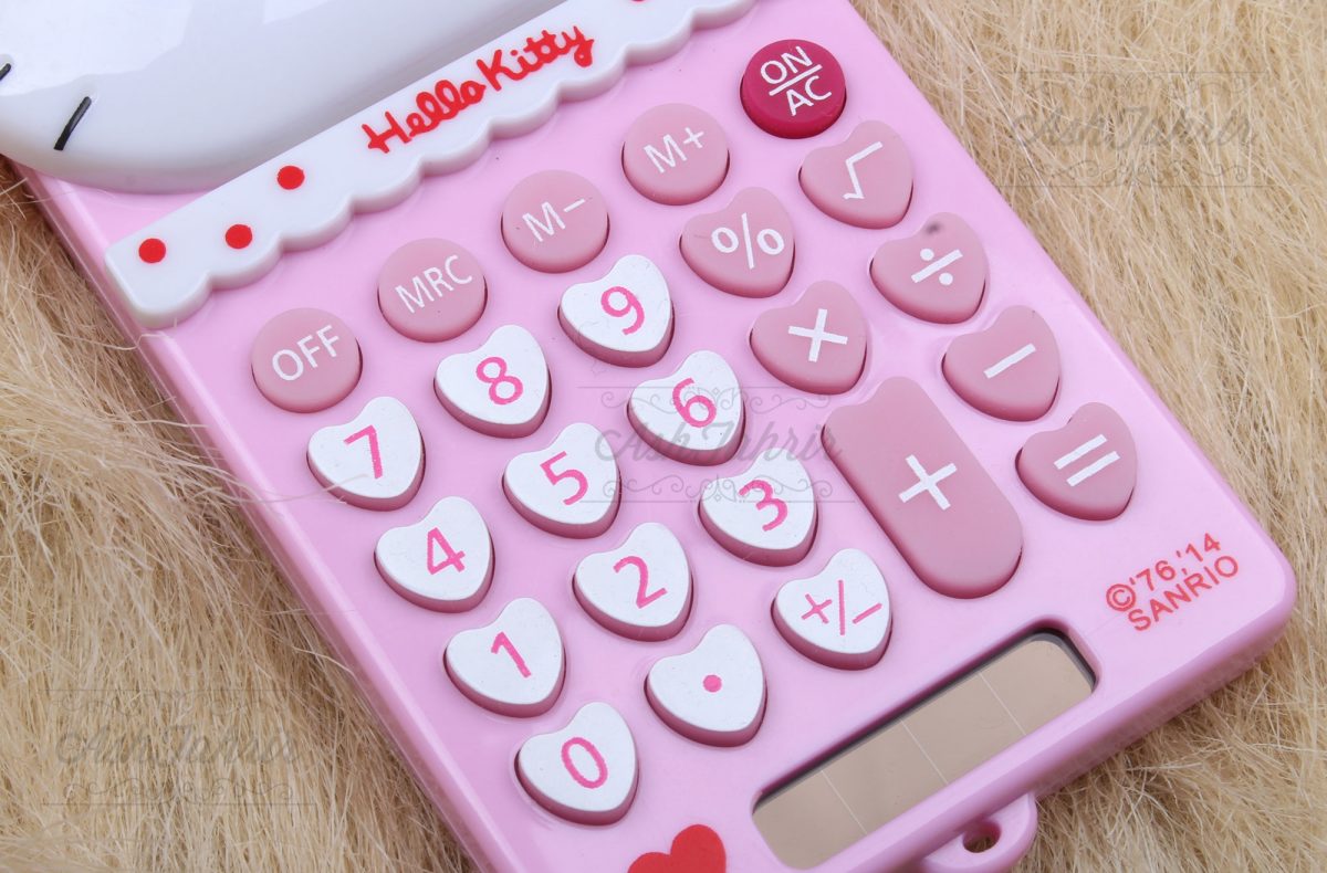 ماشین حساب دخترانه دارای دو رنگ با طرح هلو کیتی و دکمه های رنگی و برجسته که صفحه رویی ان به صورت کشویی باز می شود و از طریق نور و باتری کار می کند. یک ماشین حساب خوش ساخت با بدنه پلاستیکی که برای استفاده روزمره کاربرد دارد.