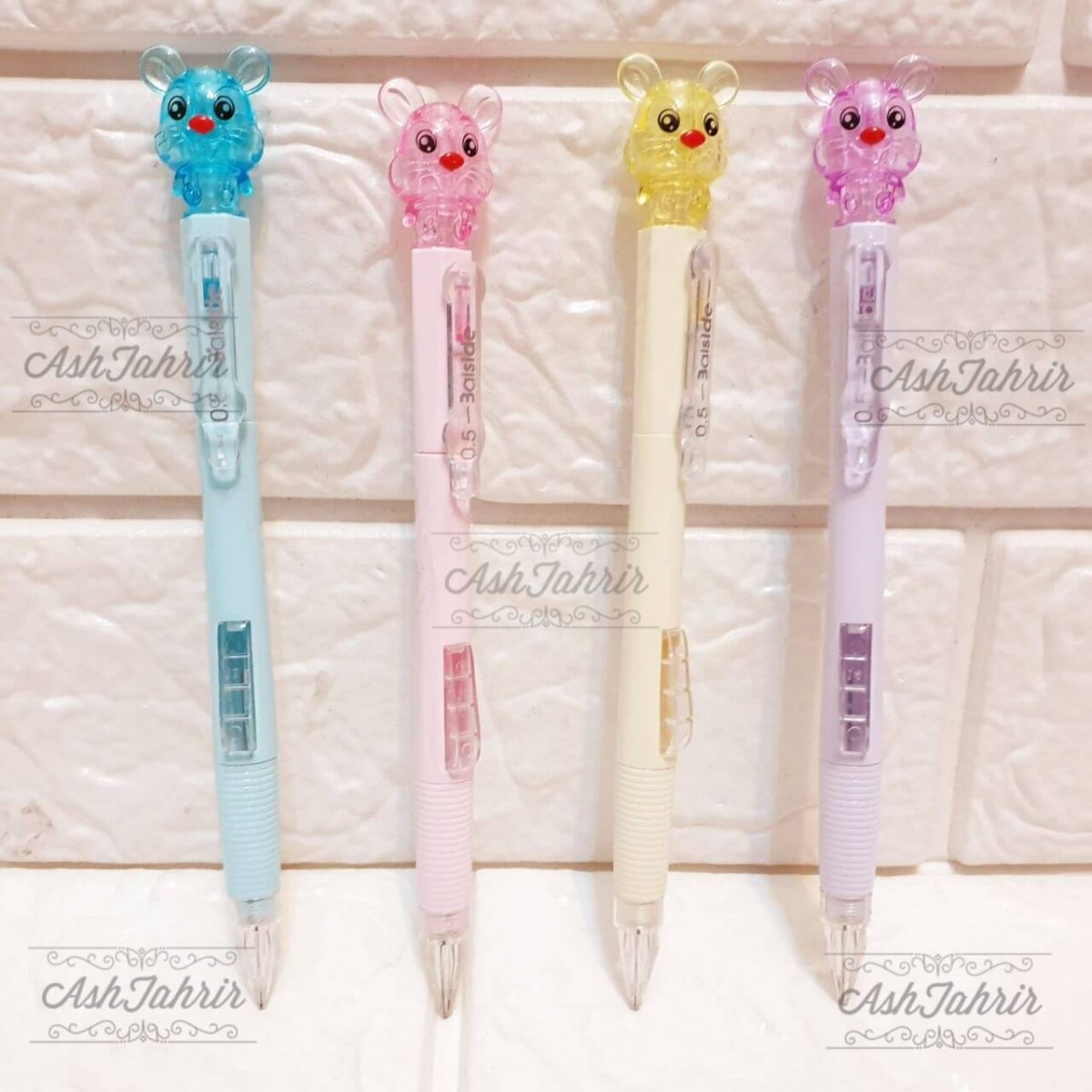 این مداد فشاری های کلاج دار موشی فوق العاده جذاب و بسیار بانمک هستند! موش موشی خیلی راحت در بالای مداد نشسته است و بینی آن به طرز بسیار بامزه ای قرمز است! به نوشتن در دفتر خاطرات خود و یا یادداشت برداری در کلاس ادامه دهید و هر زمان که لازم باشد مغزی آن را با مغز سیاه یا رنگی دوباره پر کنید! این موش های زیبا برای همیشه ماندگار خواهند بود! این مداد مکانیکی مخصوص کودکان و دانش آموزان با طرح خودکار مانند خود بسیار جذاب و دوست داشتنی است. دارای کیفیت عالی و نوک 0.5 میلی متر برای نوشتن صاف و دقیق و حتی طراحی کاملا مناسب می باشد. عملکرد این مداد فشاری بسیار ساده و در عین حال خاص می باشد، تنها با یک کلیک ساده و فشار دادن دکمه وسط آن، مغز اتود بیرون آمده و مداد نوکی خودکاری ما آماده نوشتن است. بدنه این محصول از پلاستیک قالب پیشرفته با چسبندگی عالی ساخته شده و از تکنولوژی سطح روغنی بهره می برد که باعث می شود این مداد فشاری ضد گرد و غبار باشد. بسته بندی شامل چهار مداد فشاری بدنه رنگی با مغز HB با ضخامت و طول استاندارد می باشد. مغزی گرافیت با کیفیت این اتود امکان پاک شدن آسان نوشتار را برای اصلاحات را فراهم می کند که هیچ رد و اثری به جا نمی گذارد. همین امر سبب تبدیل این محصول به یک ابزار نوشتاری خوب می کند. برای جوایز دانش آموزی و ایجاد انگیزه و تشویق کودکان به آموزش نیز بسیار کاربردی است. یک هدیه عالی برای کودکان شما چه دختر و چه پسر!