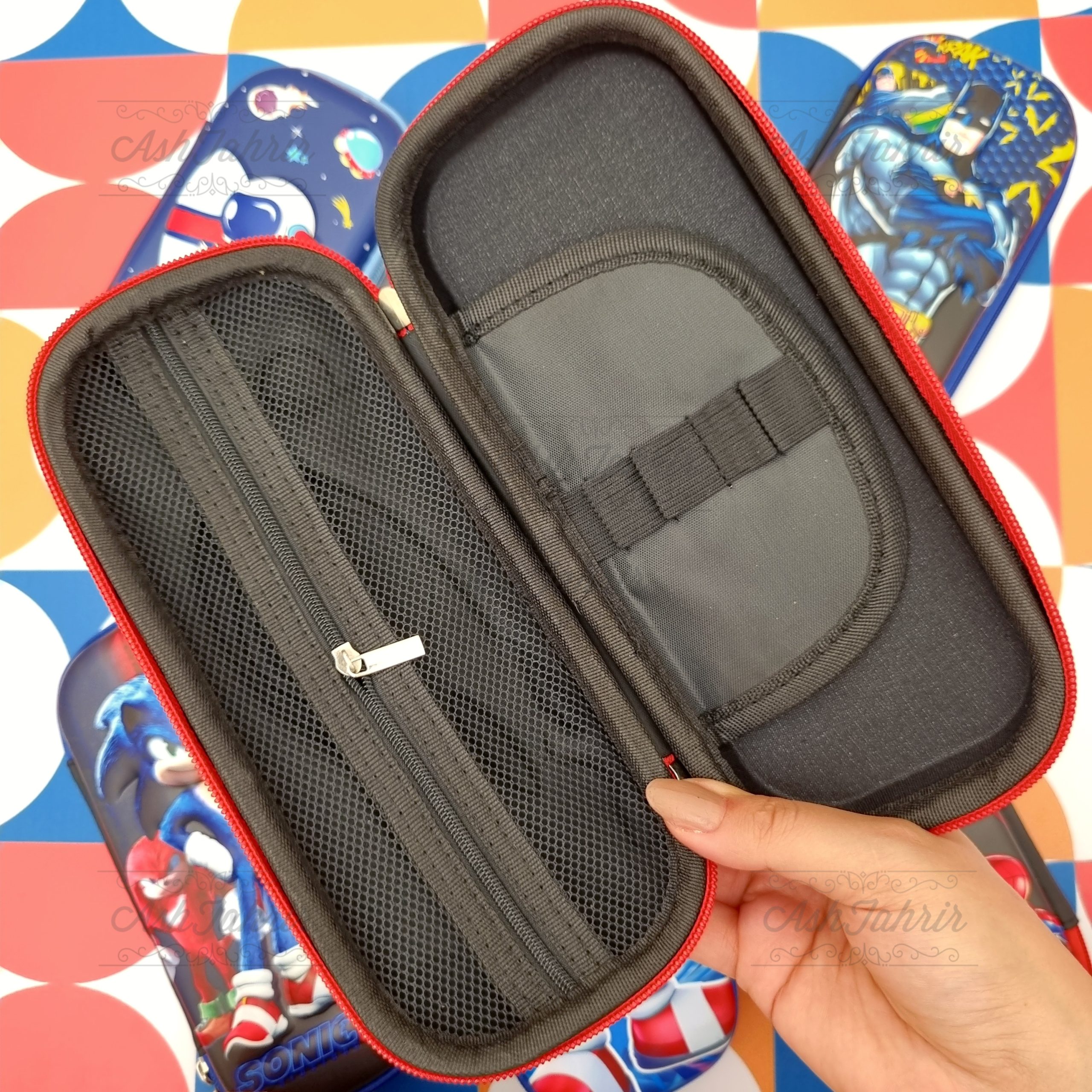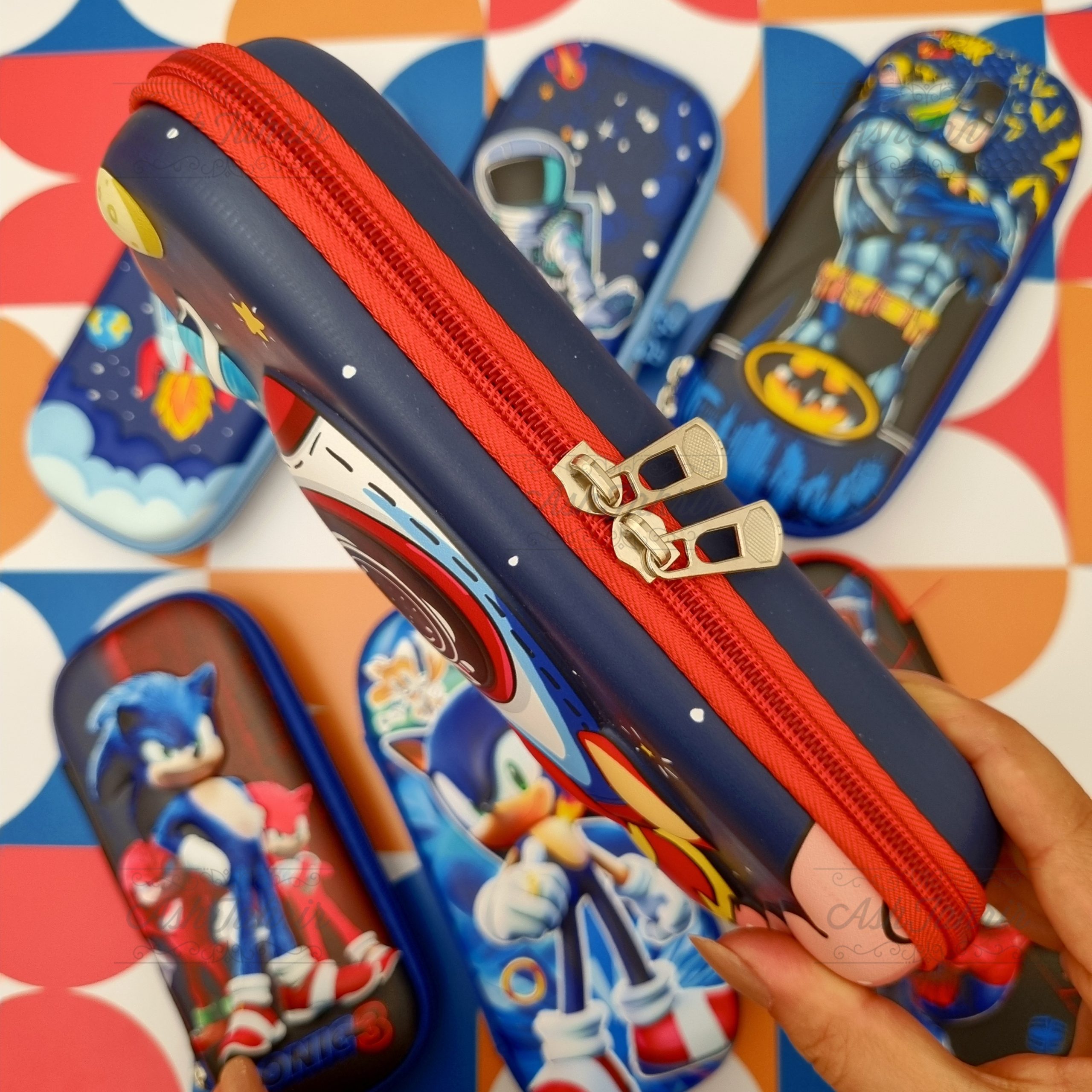 یکی از اولین ویژگیهایی که در نگاه اول به جامدادی تبلتی پسرانه طرح برجسته توجه شما را جلب میکند، طراحی بصری آن است. شخصیتهای معروف سونیک، اسپایدرمن، بتمن و… بهصورت برجسته و سهبعدی روی سطح خارجی جامدادی قرار گرفتهاند که این امر نه تنها به آن جلوهای خاص و جذاب بخشیده است، بلکه حس لذتبخشی از لمس شخصیتهای مورد علاقه کودکان را ایجاد میکند.