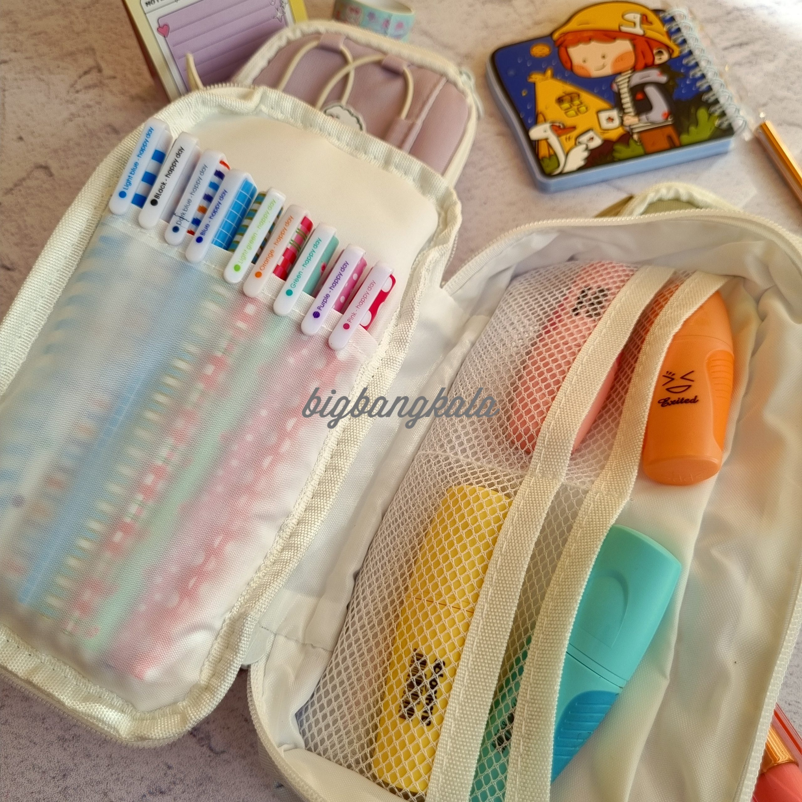 جنس مقاوم، زیپ های روان و دوخت دقیق این محصول، دوام بالا و استفاده طولانی مدت را تضمین می کند. رنگ بندی پاستلی و ظاهر فانتزی آن، علاه بر کارایی، جلوه ای زیبا و دلنشین به میز تحریر یا کیف شما می بخشد.