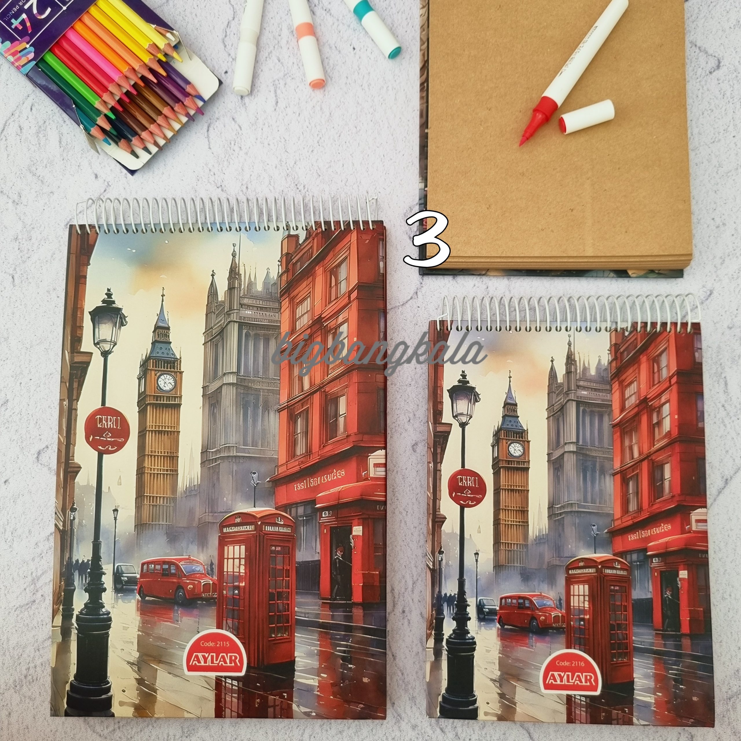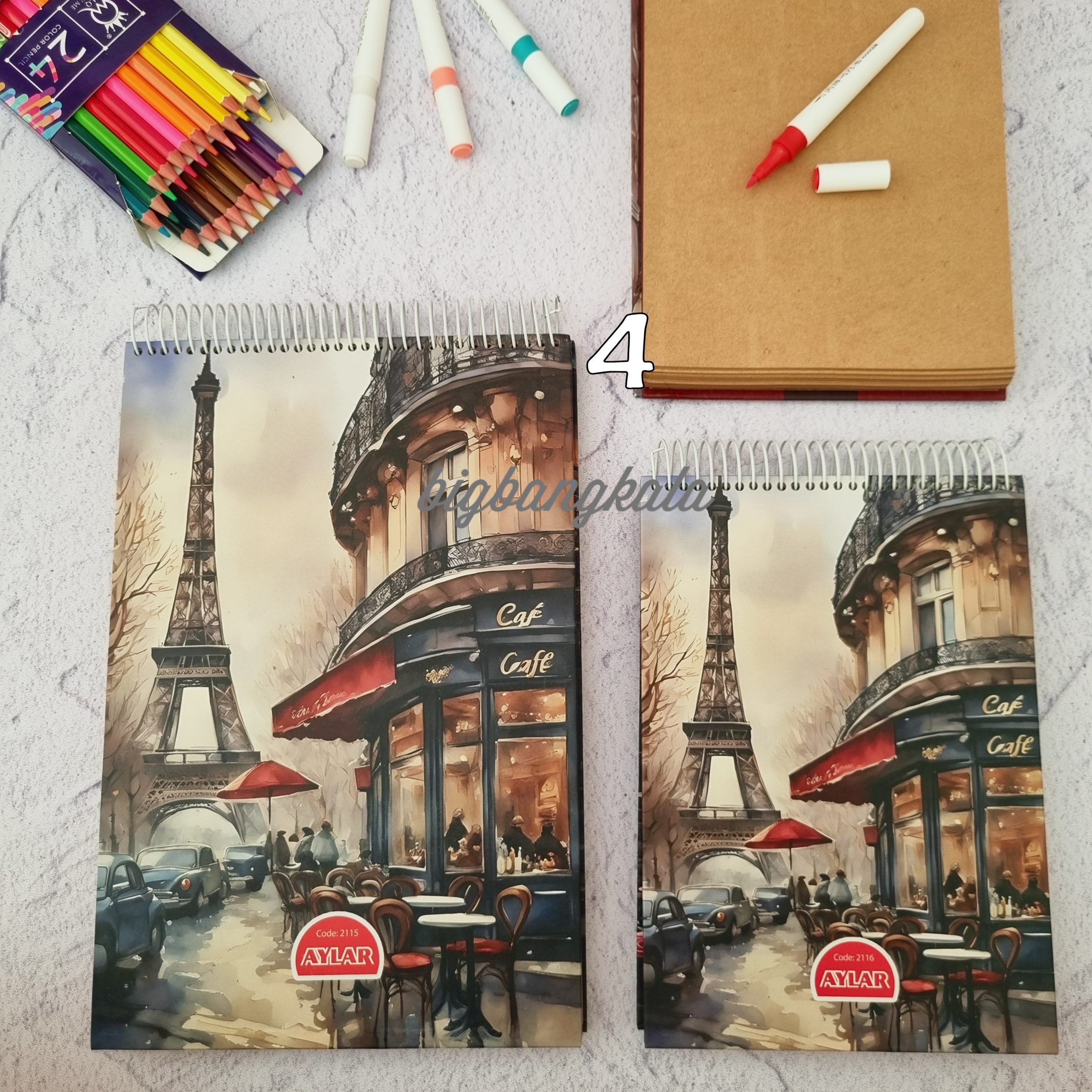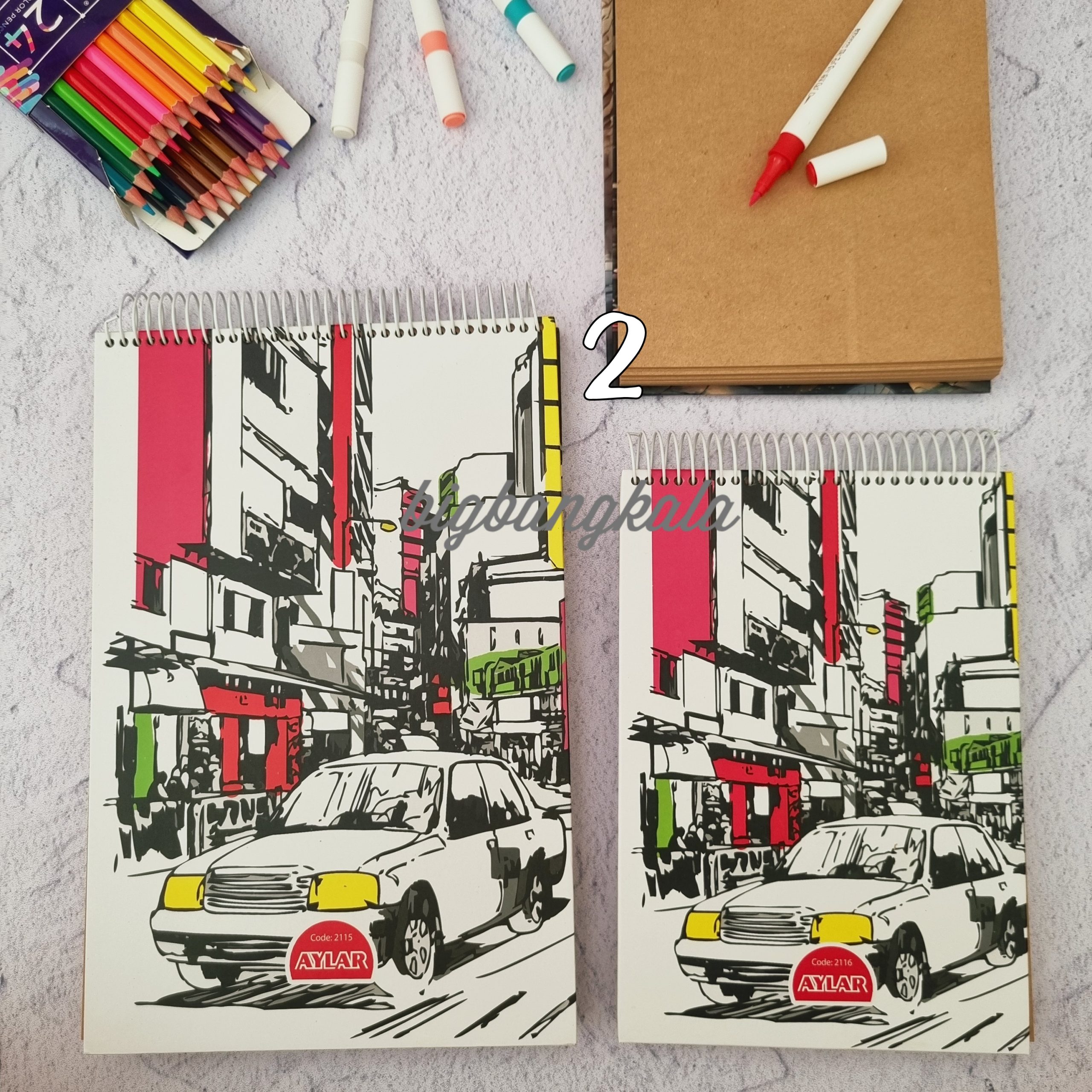 دفتر طراحی سیم از بالا جلد سخت آیلار Aylar با برگ های کرافت، برای هنرمندانی که دنبال حس طبیعی، خاص و متفاوت هستند. کاغذ کرافت بافت دار 120 گرمی، مخصوص طراحی با مداد، ماژیک یا زغال که رنگ ها در آن عمق بیشتری داشته و نتیجه چشم نواز تر است.